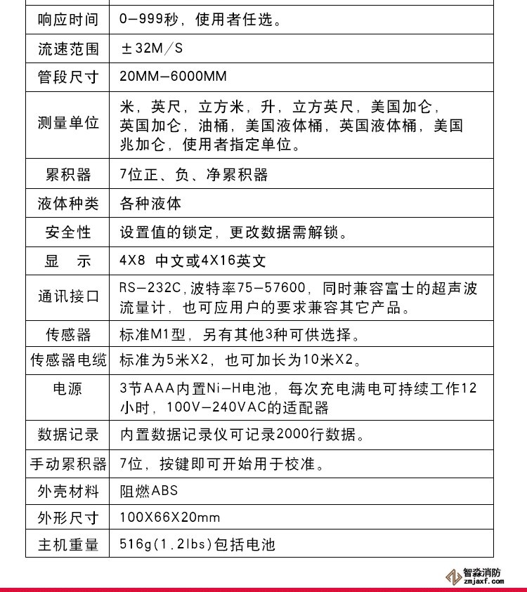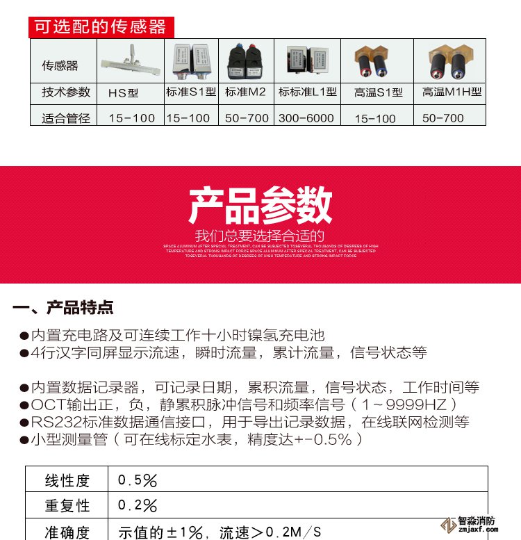 超聲波流量計測量管徑范圍:15mm~300mm,精度: