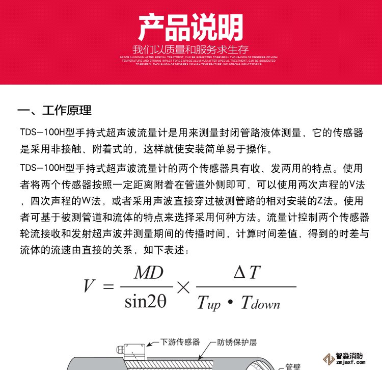 TDS-100H型手持式超聲波流量計是一種外夾、時差式超聲波液體流量計,它采用低電壓多脈沖平衡發射接收