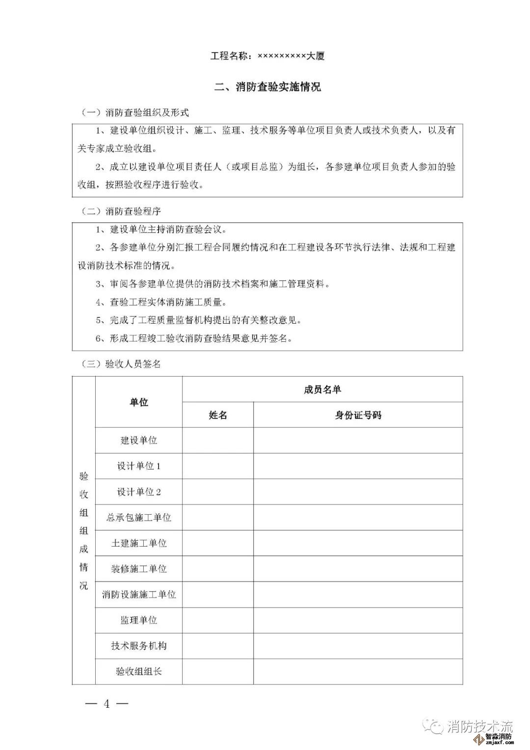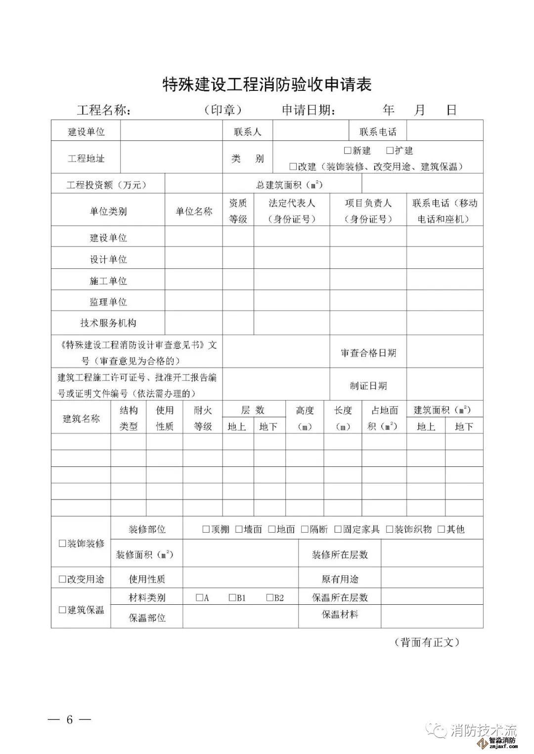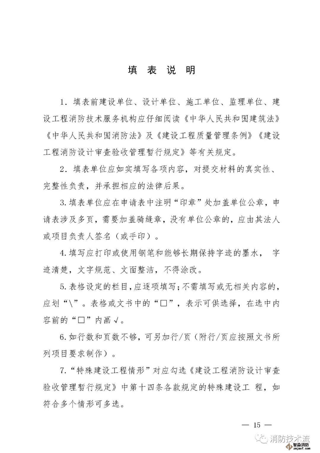 其中附件2和附件5中的填表說明均表示: 建設單位如未直接和符合從業條件的技術服務機構訂立委托合同,在施工過程中自行完成消防設施檢測,或在建設工程竣工驗收消防查驗時自行完成中 消防設施性能、系統功能聯調聯試,則本報告中 “ 技術服務機構 ” 一欄由建設單位及其項目負責人蓋章、簽字,并承擔相應責任和法律后果。